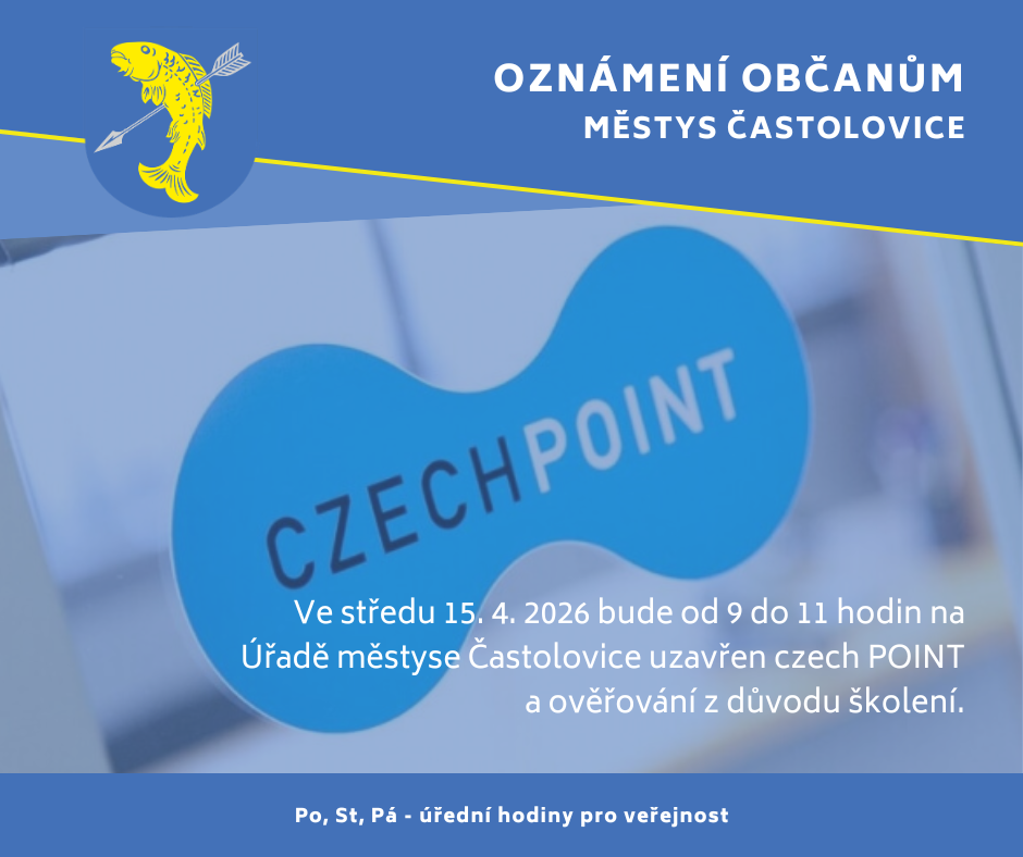 V termínu od 16. 4. 2026 do 17. 4. 2026 budou na místních komunikacích v ulicích Husova a Školská v Častolovicích probíhat výkopové práce z důvodu realizace přípojky elektřiny (stavba: „RK, Častolovice, Husova 195, přípojka IP-12-2016957“).